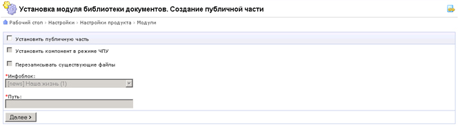 Рис. 6 Второй шаг установки модуля – создание публичной части